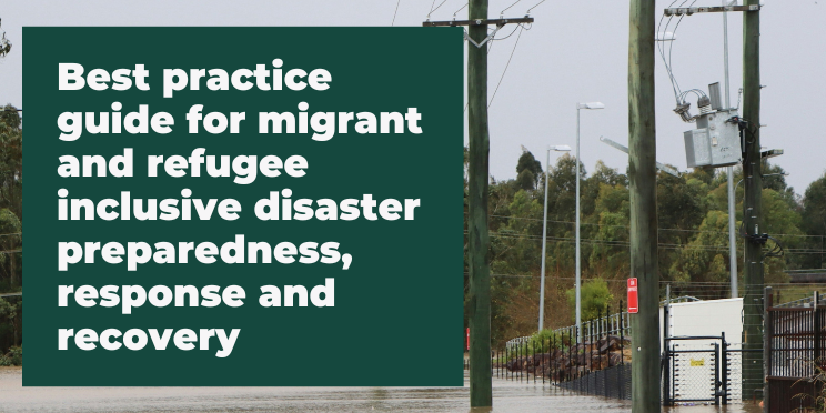 A guide that outlines 9 guiding principles to inform disaster preparedness, response and recovery efforts for migrant and refugee women, non-binary, and gender diverse people. Download Best Practice Guide for Inclusive Disaster Recovery.